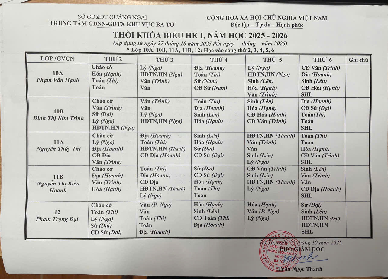 • Thời Khóa Biểu Năm Học Mới