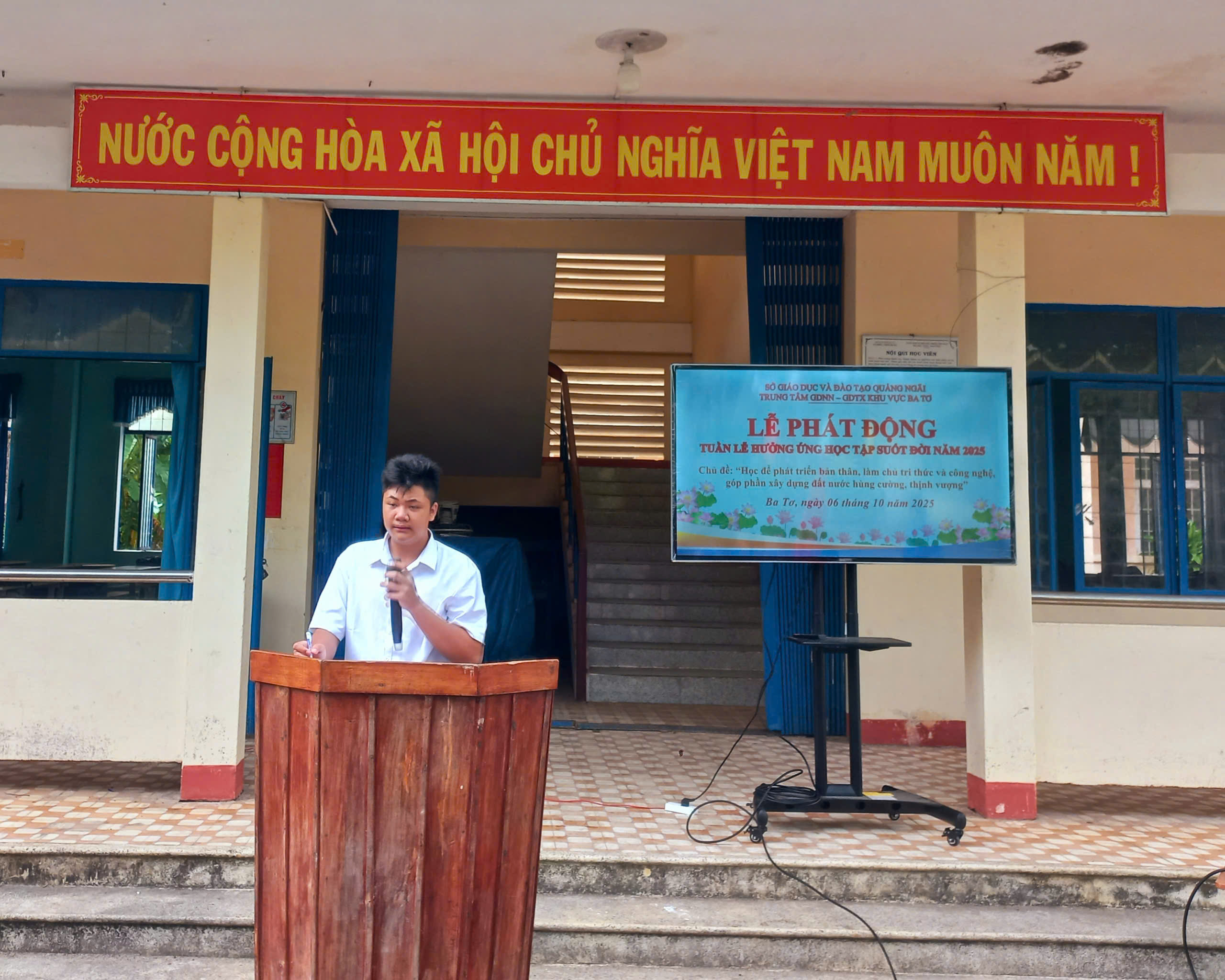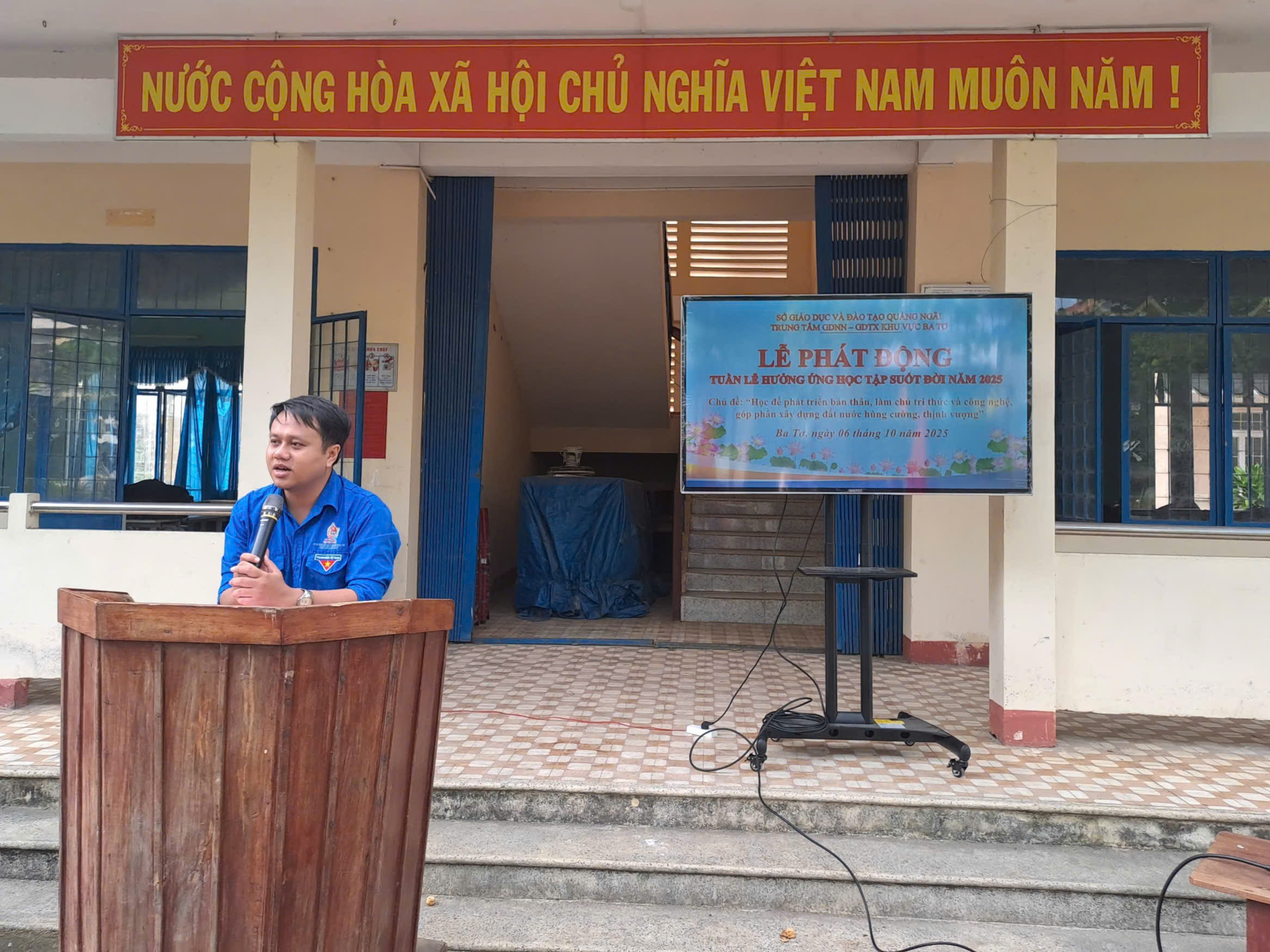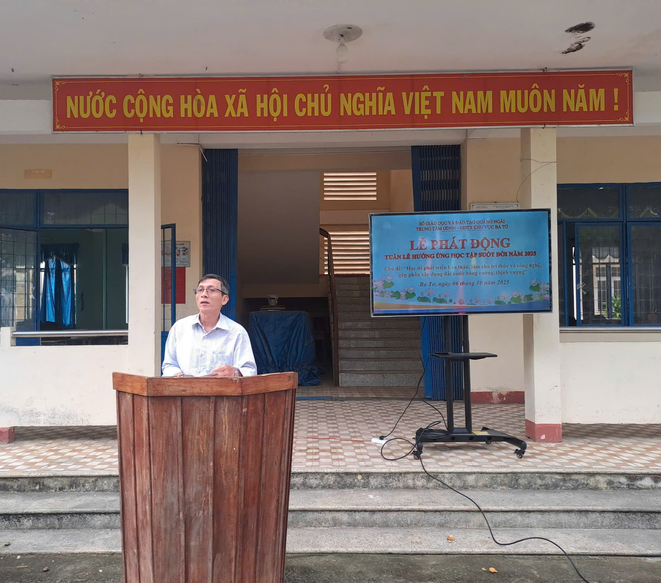 Sáng ngày 06/10/2025, Trung tâm GDNN – GDTX khu vực Ba Tơ tổ chức buổi lễ phát động Tuần lễ hưởng ứng học tập suốt đời năm 2025 với chủ đề: