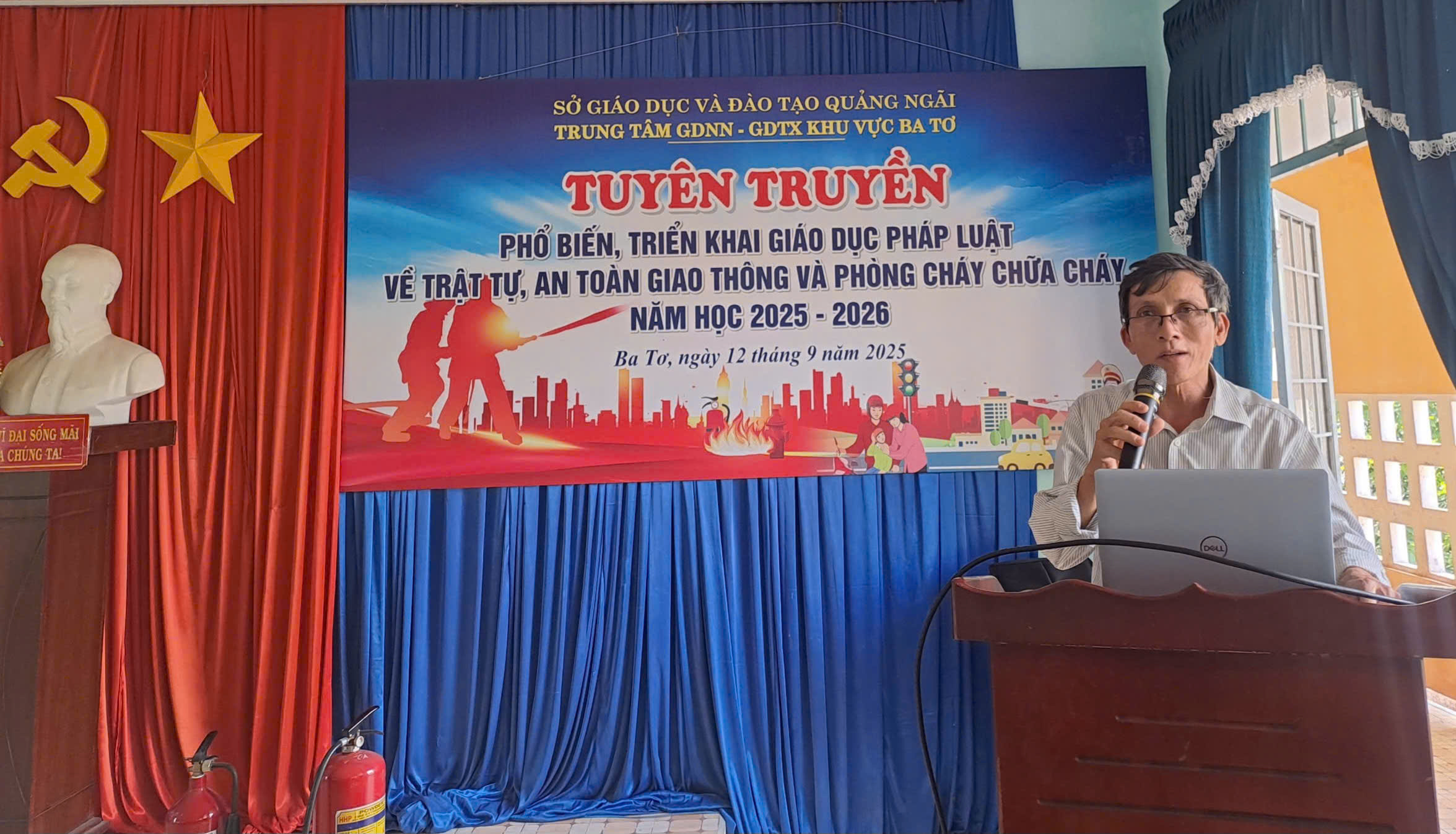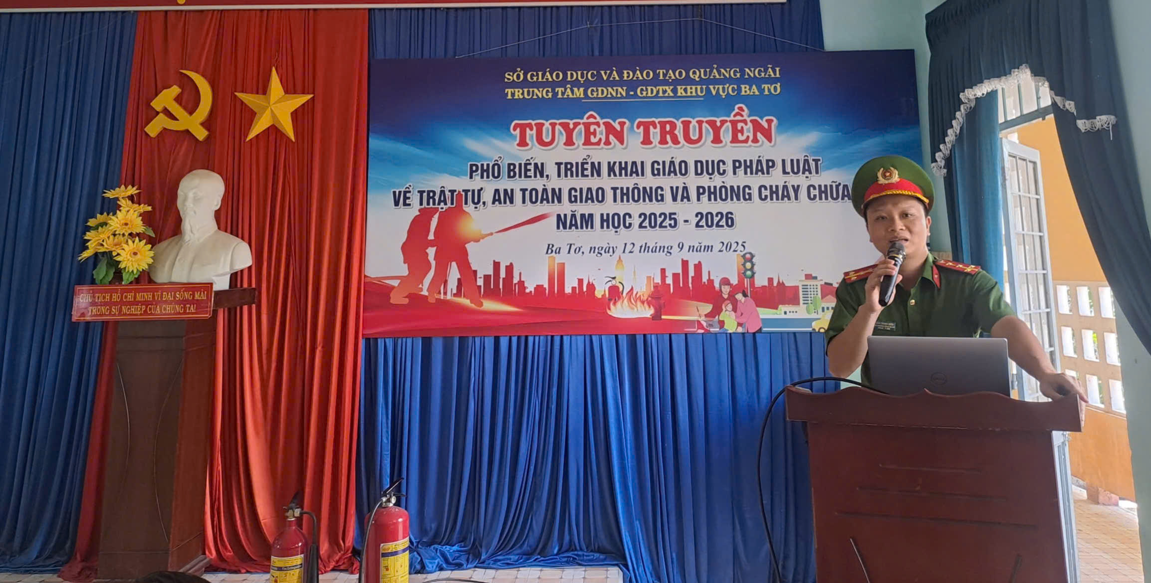 👉Chiều ngày 12/9, Trung tâm GDNN – GDTX khu vực Ba Tơ kết hợp với Công an xã Ba Tơ tổ chức tuyên truyền về trật tự, an toàn giao thông và PCCC năm học 2025 – 2026.